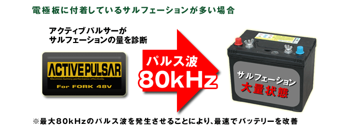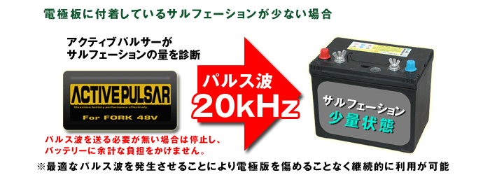 ・サルフェーションが多い場合→パルス波を多く照射