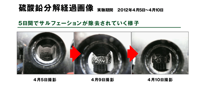 サルフェーションを除去する為にパルス波を照射しますが、この時に振動が弱いとサルフェーションが取れませんし、強いとペースト状鉛が電極剥離し蓄電能力を低下させる危険性があります。